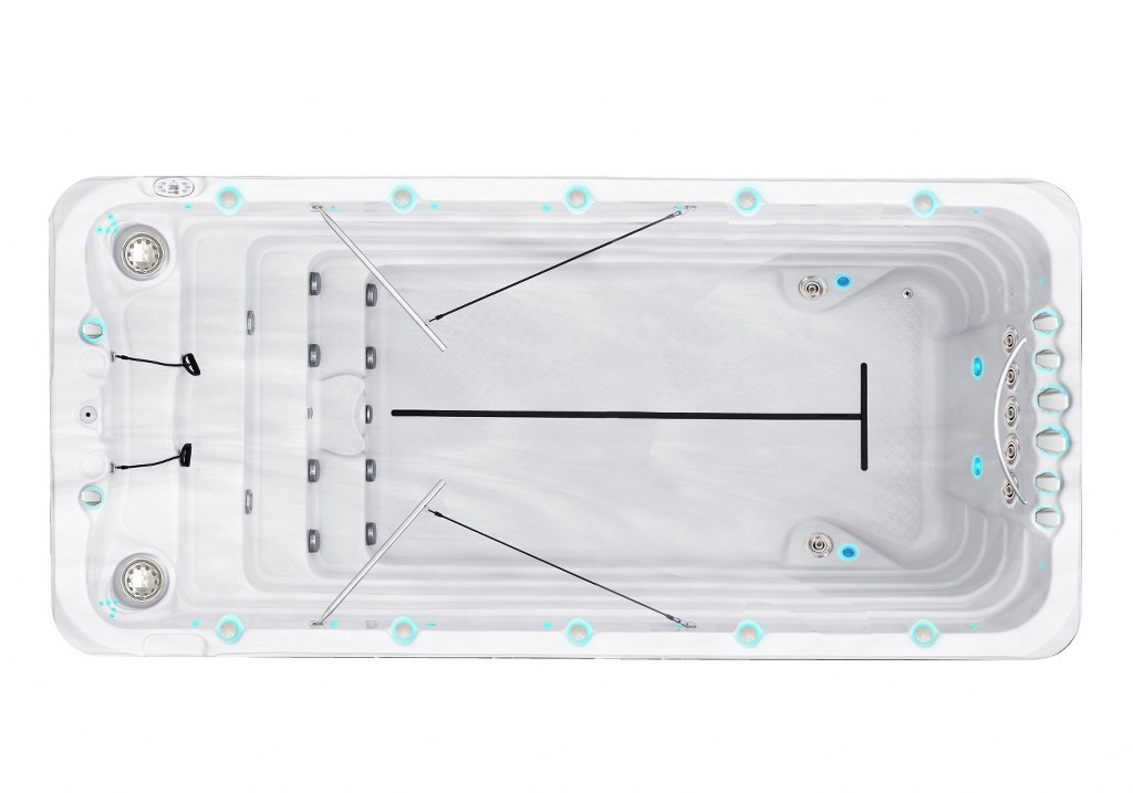 Siz üstteki iki yüzme jetinin kuvvetini azalttıkça, alttaki yüzme jetlerinin yoğunluğu otomatik olarak artar ve daha fazla ‘kaldırma’ oluşturarak yüzme hızınız azaldıkça daha fazla kaldırma kuvveti sağlar. Ne kadar hızlı yüzerseniz, gerekirse alt jetlerden daha az kaldırma ve daha güçlü bir akım için akış üst jetlere yönlendirilir. Fitness Serisindeki Swim Spa’larda ayrıca standart özellikler olarak Kürek Ekipmanı, Erişim Basamağı ve Synergy Su Bakım Sistemi bulunur.